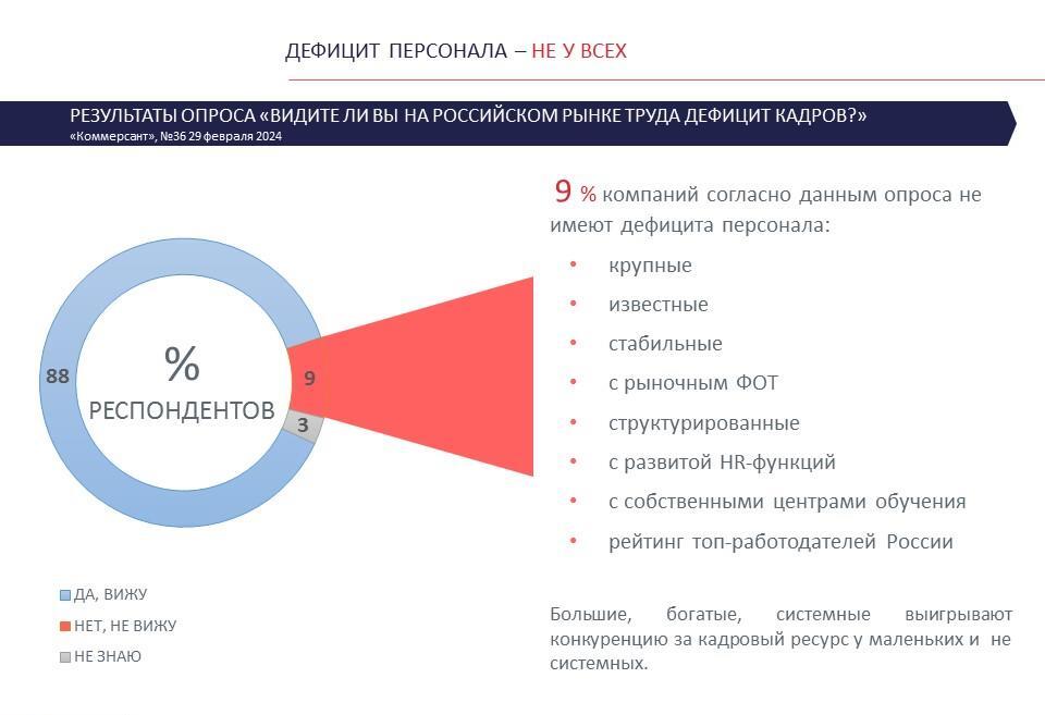Участники обсудили нетиповые причины дефицита персонала, способы противодействия кадровому голоду, методам удержания топ-менеджеров в условиях нестабильности.