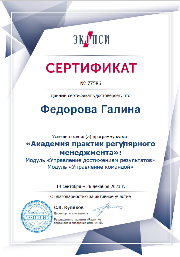 Выражаем благодарность ЭКОПСИ за качественное и интенсивное обучение.