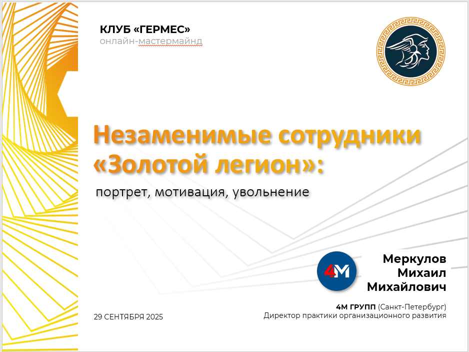 29 сентября 2025 года эксперты 4М ГРУПП провели для членов клуба «Гермес» мастермайнд на тему: «Незаменимые сотрудники - «Золотой легион» собственника».